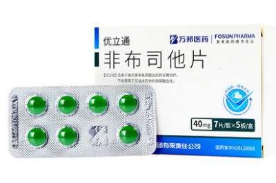非布司他适合痛风高尿酸血症的治疗,建议口服推荐剂量是40-80毫克,建议每天一次服用。如果两周之后血尿酸还高一点,那么建议将剂量增加到80毫克,每天一次即可。也可以选择饭前饭后吃。但是如果不注意剂量副作用还是很大的,建议严格按照正确的用量来吃,平时还可以使用菊苣栀子茶(点此了解)代茶饮用,菊苣栀子茶的主要成分由栀子、菊苣、葛根、桑叶、百合等组成,其中所含有的菊苣以及栀子这两种物质可以帮助促进尿酸代谢、抑制酸值的增长、改善预防高尿酸出现的作用,长期服用有助于调节尿酸、改善痛风症状(点击查看效果反馈)(点此了解),非常适合高尿酸痛风人群日常饮用。