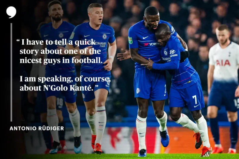 在我加盟切尔西之前,我就听过关于他的美丽人生,他们说他总是面带微笑。人们也说坎特总是开着一辆二手的Mini Cooper,也从来不对人怒吼。但你们都知道足球比赛是什么样的,应该没有人真的是这种性格吧。足球比赛充斥着巨大的压力,成倍的失望,我们都是人。没有人能一直那么谦谦君子吧,我觉得这是不可能的。