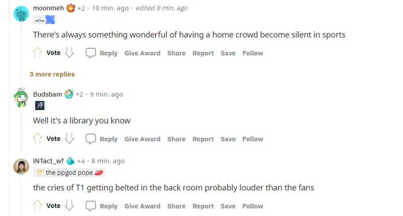 T1在后台被皮带抽打后的喊声都要比粉丝们的声音大。