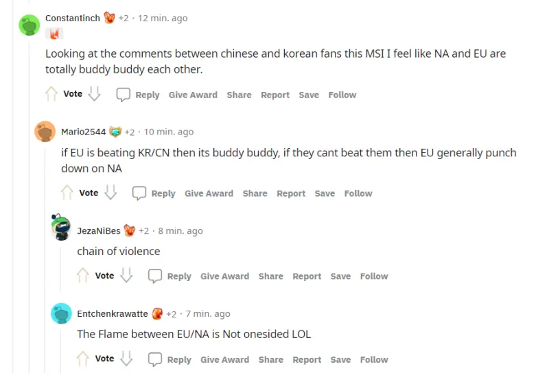 这次MSI中韩粉丝们之间的言论让我感觉NA和EU其实是好兄弟。