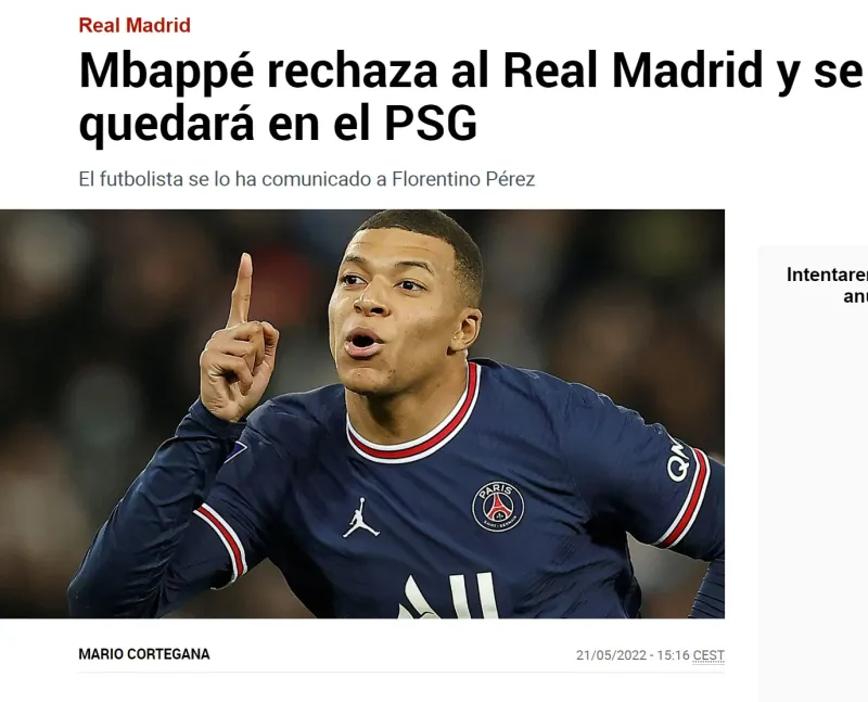 根据Mario Cortegana透露,姆巴佩身边的人士表示,“这是姆巴佩一生最难的决定”。
