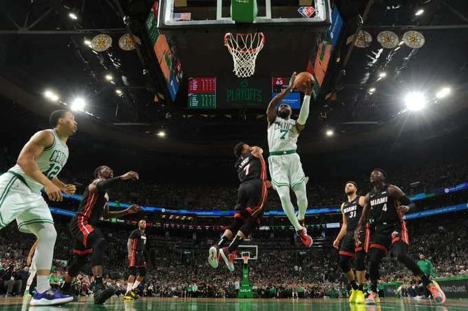 本场比赛,凯尔特人后卫杰伦-布朗得到40分9篮板,其中两分球11投11中。
