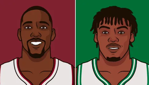 本轮系列赛至今,当凯尔特人中锋罗伯特-威廉姆斯出战时,热火中巴姆-阿德巴约场均得到8.3分6.3篮板1.6助攻0抢断;反之,阿德巴约则得到31分10篮板6助攻4抢断。