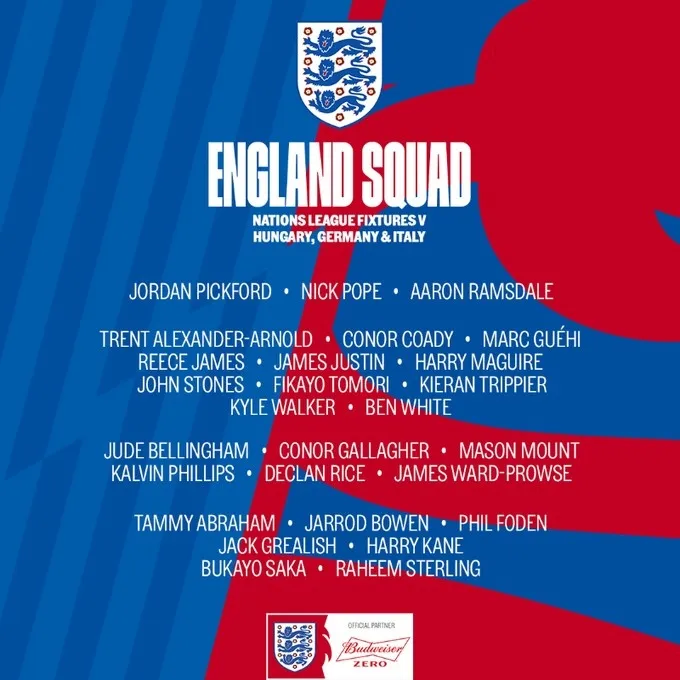 05月24日讯 英格兰公布新一期的国家队大名单。