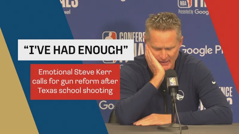 在今日独行侠vs勇士西部决赛G4的赛前记者发布会当中,科尔在发布会的全程都在谈论关于本次枪击案的事情,情绪激动全程哽咽,并几度怒拍桌子,表达着他此事件的深切关注。