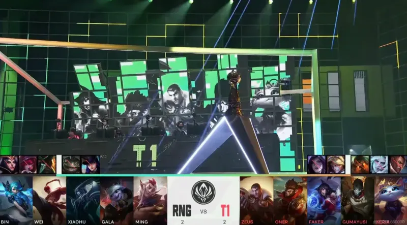 T1选用:Zeus杰斯,Oner猴子,Faker狐狸,Gumayusi烬,Keria悠米