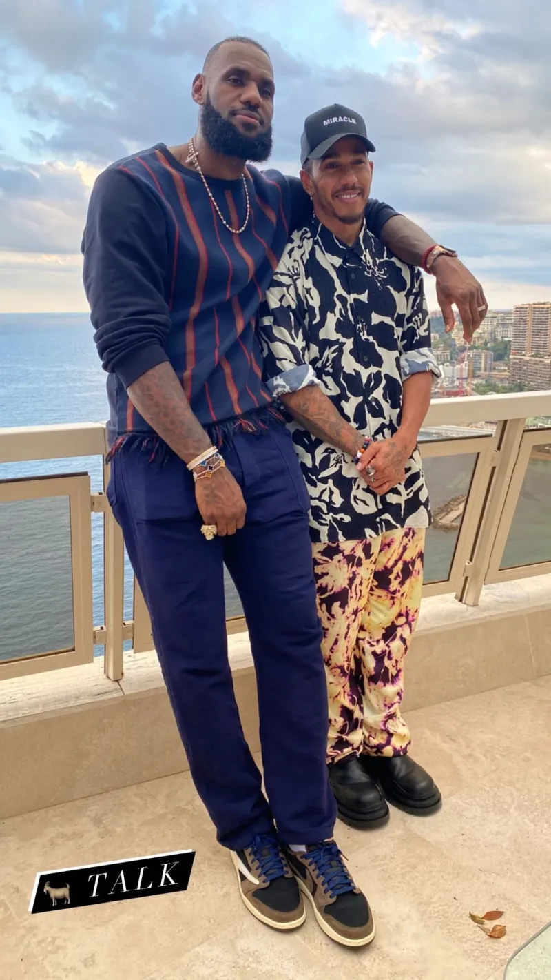 05月30日讯 骑士前锋凯文-乐福今日更新Instagram Story,晒出湖人前锋勒布朗-詹姆斯与F1七冠王、奔驰车手刘易斯-汉密尔顿在摩纳哥的合照。