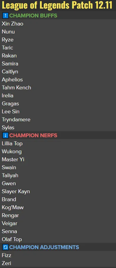 Riot Phroxzon:“12.11会是个改动非常大的版本。为团队和帮助我们的人团结起来将一切汇集到版本中中而感到非常自豪。我们非常注意不推回上个版本做好的改动,而且我们尽力在保持装备的选择,英雄的感觉以及特点,以及不同位置的平衡等等。