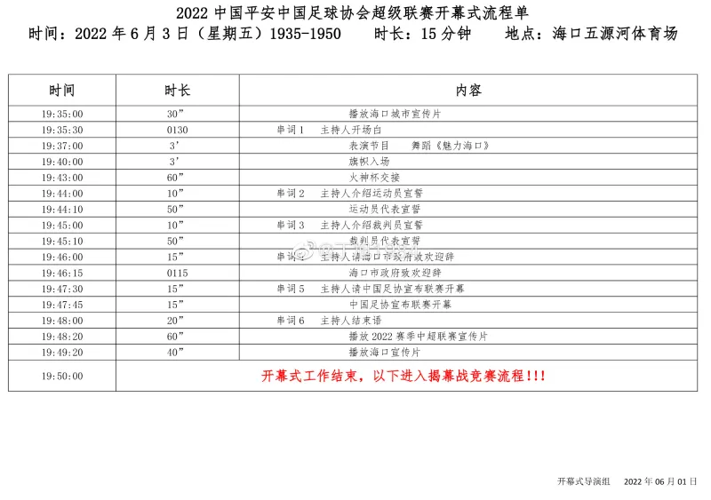 此外,中超开幕式的流程也已经出炉,开幕式流程十分简短,仅15分钟左右。