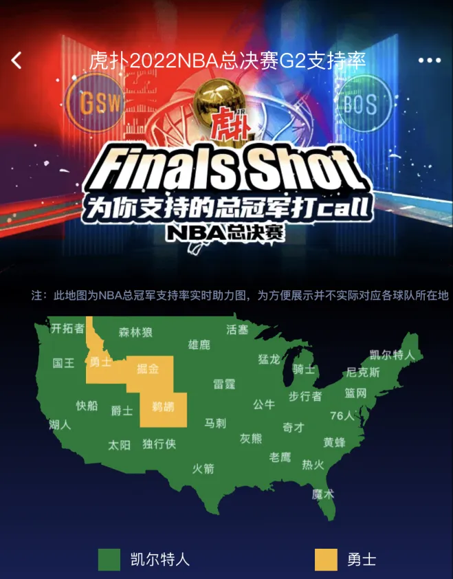 2022NBA总决赛地图支持率活动正如火如荼进行中,昨天总决赛第一场比赛结束,凯尔特人客场120-108击败勇士,大比分1-0领先。