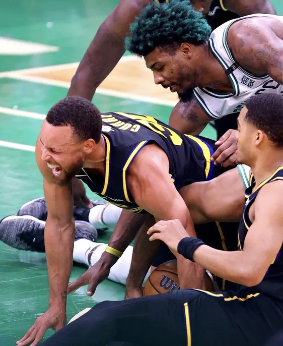 比赛中勇士后卫斯蒂芬-库里右脚踝受伤,赛后勇士随队记者Tim Kawakami表示,库里在结束采访后一瘸一拐的离开了,但他并没有穿保护靴,不过肯定是右脚踝有些问题。