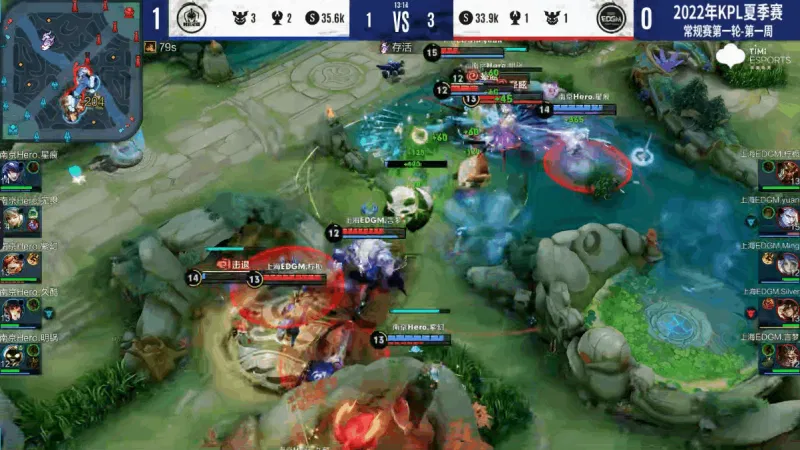 Game 1:蓝色方上海EDGM,红色方南京HERO
