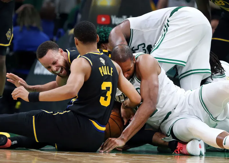 比赛进行过程中,勇士后卫斯蒂芬-库里膝盖被艾尔-霍福德压到。库里缓了一阵后继续在场上进行比赛。