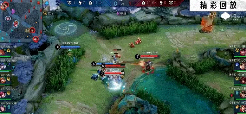 4分30秒,双方在对抗路爆发大乱战,小义暃残血遭到无心沈梦溪大招收割无奈阵亡