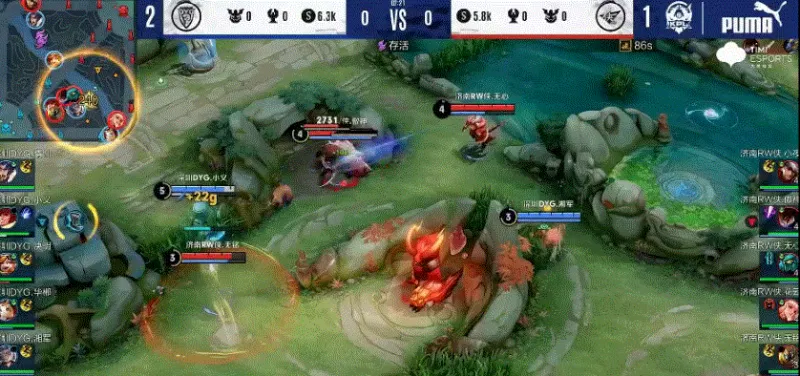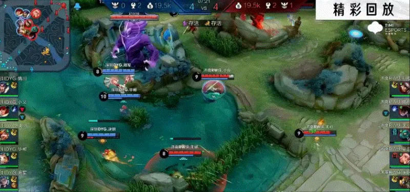 9分20秒,DYG多人入侵RW侠野区顺势打出一波零换三