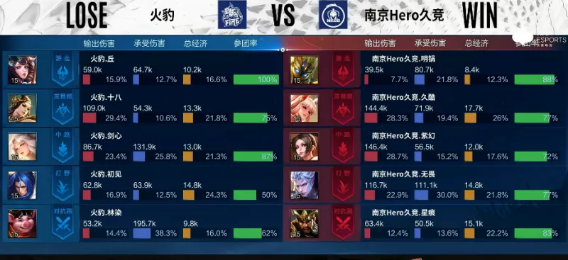 Game1:火豹蓝色方,南京Hero久竞红色方