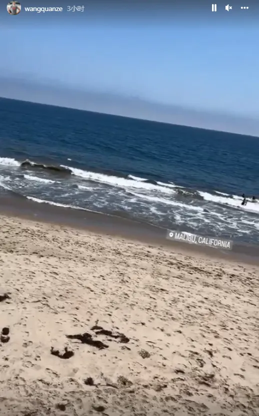 06月12日讯 广州男篮球员王泉泽更新社媒,晒出自己在美国加州马里布市海边游玩的视频。