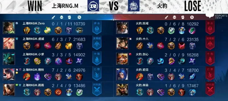 蓝色方选用:雨雨夏侯惇、晚秋娜可露露、小求墨子、虔诚公孙离、Zero桑启