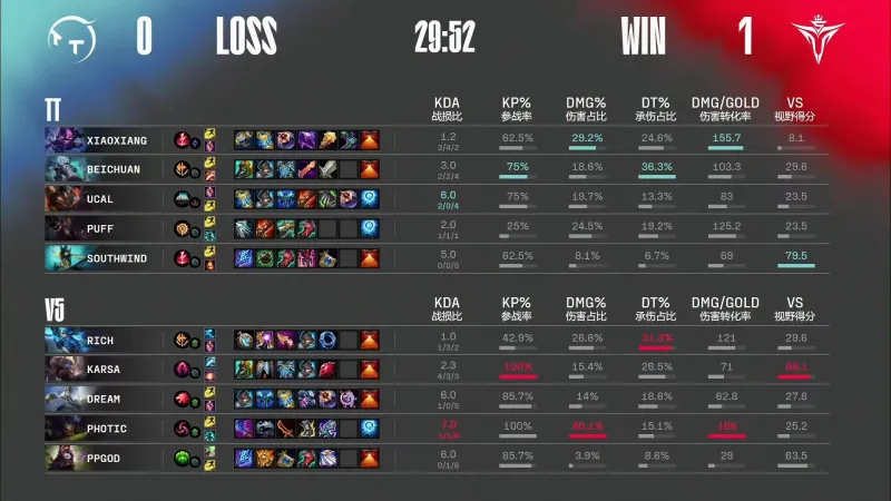06月15日讯 Game1:蓝色方:TT,红色方:V5