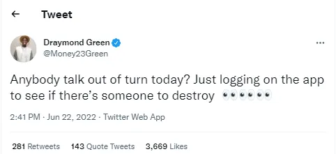 就在刚才(当地时间深夜11点40),他新发布了一条推特:“今天有人在推特上说胡话吗?我登上来看看有没有人需要被我制裁一下下(Anybody talk out of turn today? Just logging on the app to see if there’s someone to destroy)”。