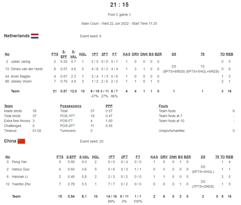 06月22日讯 北京时间今日,FIBA三人篮球世界杯继续进行,中国男队首战15-21不敌荷兰。