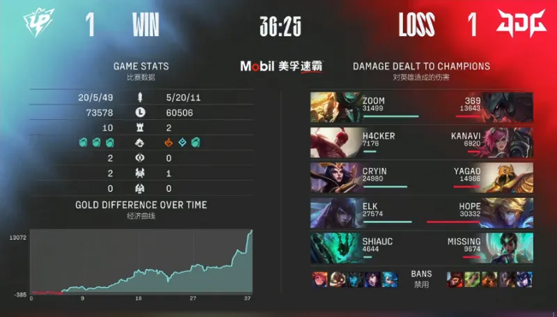 35分钟:UP拿下大龙,JDG强开团被反打出零换五,UP一波结束比赛