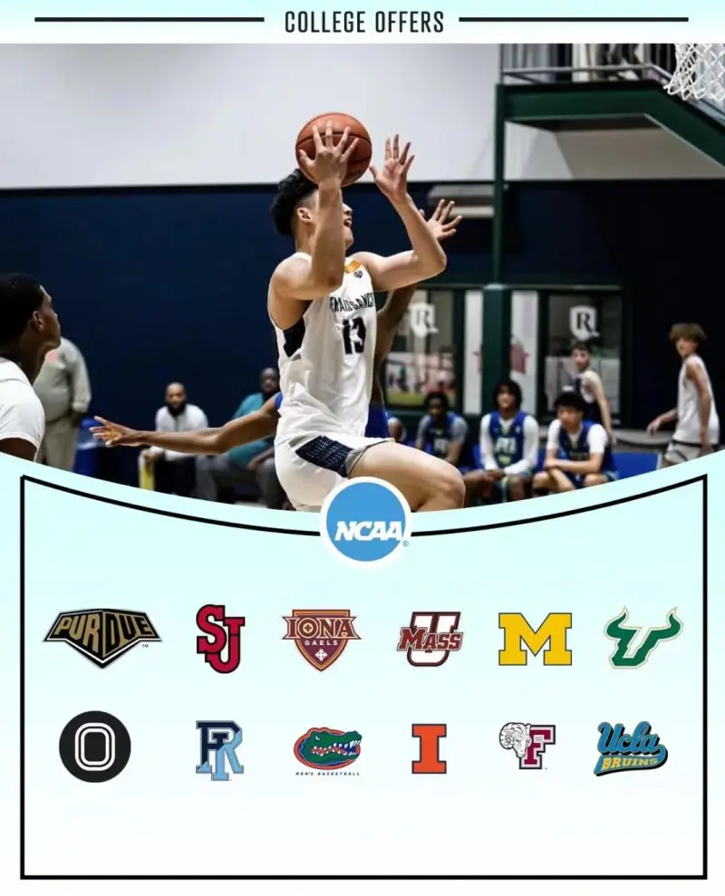 庞清方收到的offer有:普渡大学、圣约翰大学、艾奥纳学院、马萨诸塞大学、密歇根大学、南佛罗里达大学、Overtime Elite职业联赛、罗德岛大学、佛罗里达大学、伊利诺伊大学、福德汉姆大学和UCLA。