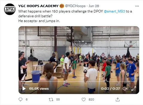 该篮球训练营也在官方推特上晒出了斯马特教导小球迷们的视频。