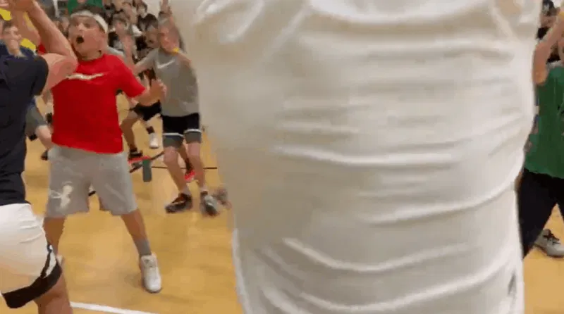 随后随着教练一声令下,斯马特带着所有小球迷们一起摔倒在地,画面相当有趣。