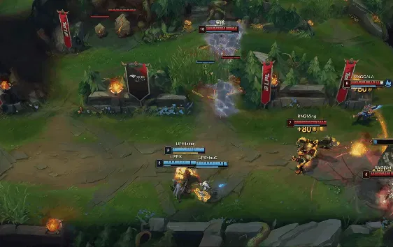 13分钟,下路团战,泰坦钩中盲僧后大招击飞3人,RNG打出0换2后推掉高地塔。
