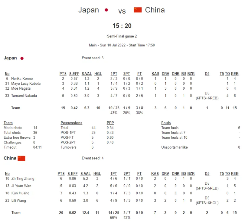 07月10日讯 FIBA三人篮球亚洲杯女子组半决赛,中国女篮20-15击败日本女篮,晋级决赛。