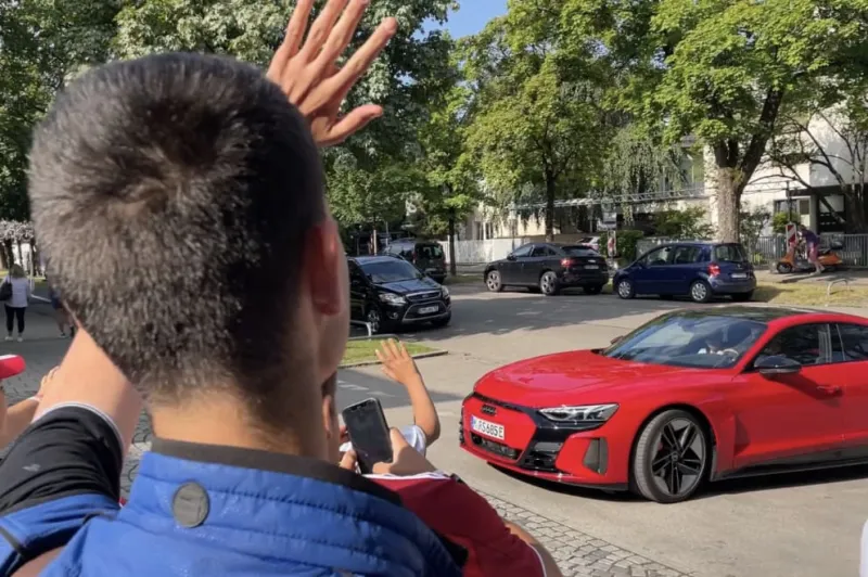 周五,这位世界足球运动员于上午9点08分乘坐红色奥迪e-tron GT RS(646马力)抵达塞贝纳大街,和之前一样也有专人驾驶。一些球迷向他挥手,实际上,球员最迟应该在上午9点抵达基地。