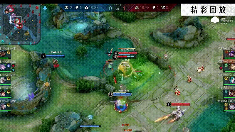 10分40秒,龙王处爆发团战,姜子牙大闪收掉阿古朵本体,马超未能收掉残血蒙恬,WB打出一波1换3