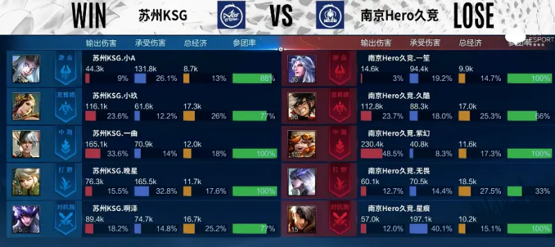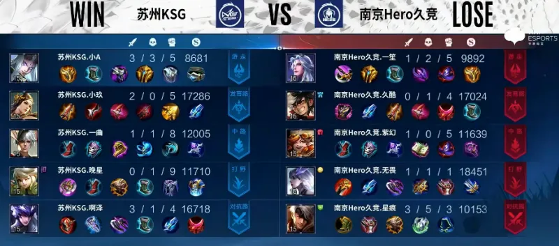 Game1:苏州KSG蓝色方,南京Hero久竞红色方