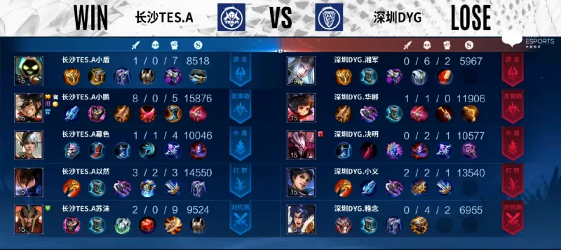 Game3:蓝色方长沙TES.A 红色方深圳DYG