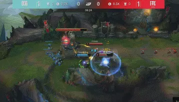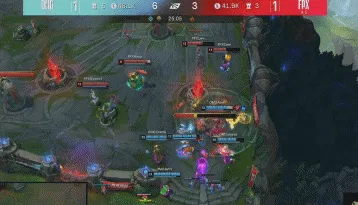 25分钟OMG带着大龙Buff推上高地,Able狂风闪现向前拿下双杀,OMG破掉FPX下路高地和门牙塔;