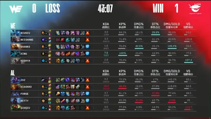 WE蓝色方,AL红色方