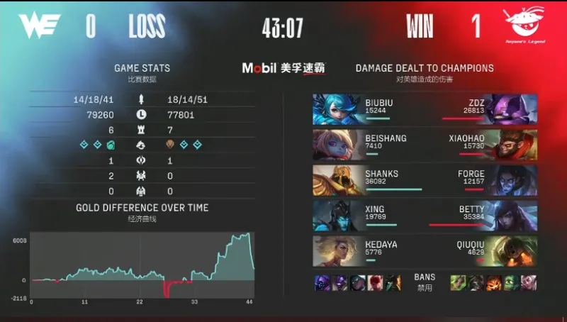 43分钟:WE先手开团秒掉了塞拉斯和泰坦,但是厄斐琉斯孤身一人打出团灭,厄斐琉斯拿下四杀一波结束比赛