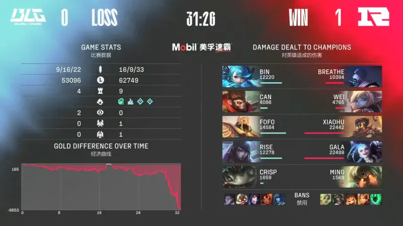 比赛第30分钟RNG带双龙汇推进轻松结束比赛。