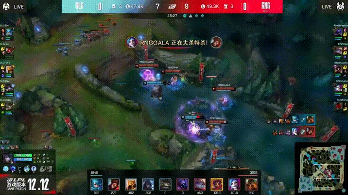 比赛第28分钟,双方爆发远古龙团。GALA收割拿下三杀。RNG拿下远古龙和大龙。