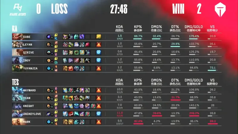 [赛后]TES 2-0 RA:强势开局一度遇险,TES乱中取胜轻取RA