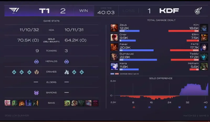 39分钟:T1龙魂团将对手堵进龙坑打出零换四一波结束比赛