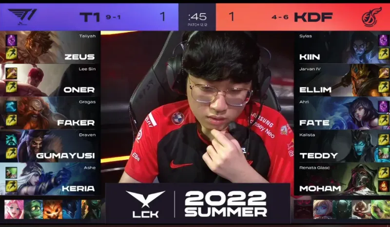 T1选用:Zeus酒桶,Oner盲僧,Faker岩雀,Gumayusi德莱文,Keria寒冰