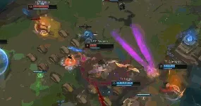 27分钟:双方在河道一番拉扯后T1成功击杀烈娜塔随后追击收掉滑板鞋拿到大龙