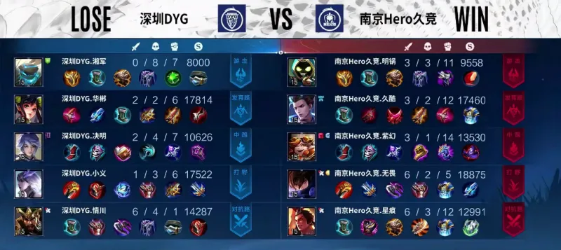 蓝色方:深圳DYG 红色方:南京Hero久竞