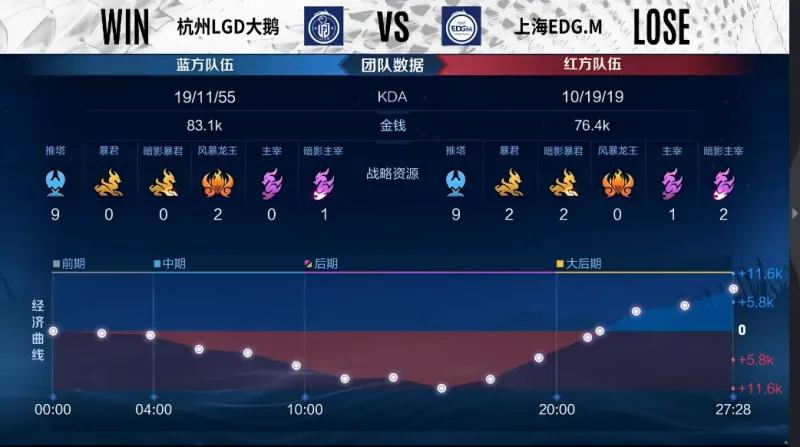 蓝色方: 杭州LGD大鹅 红色方:上海EDG.M
