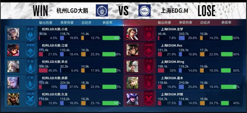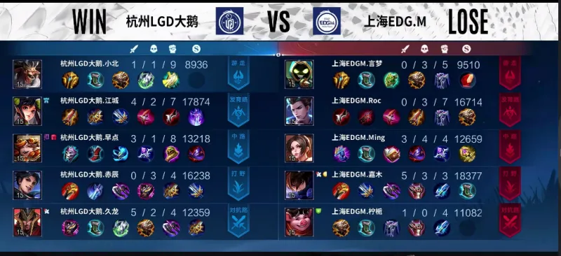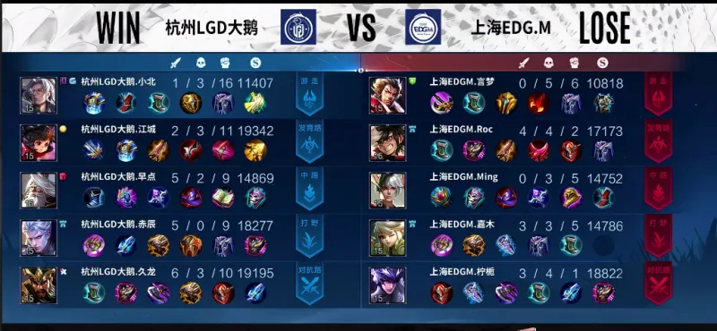 蓝色方:杭州LGD大鹅 红色方:上海EDG.M