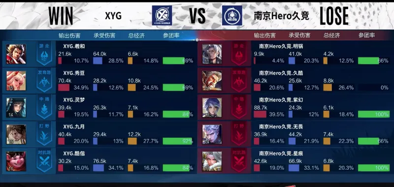 Game1:蓝色方XYG 红色方南京Hero久竞