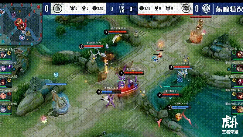 Game1:蓝色方成都AG超玩会 红色方重庆狼队
