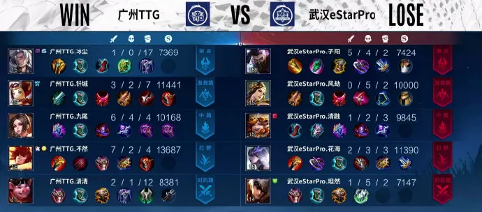 Game2:蓝色方武汉eStarPro 红色方广州TTG